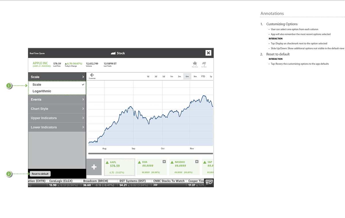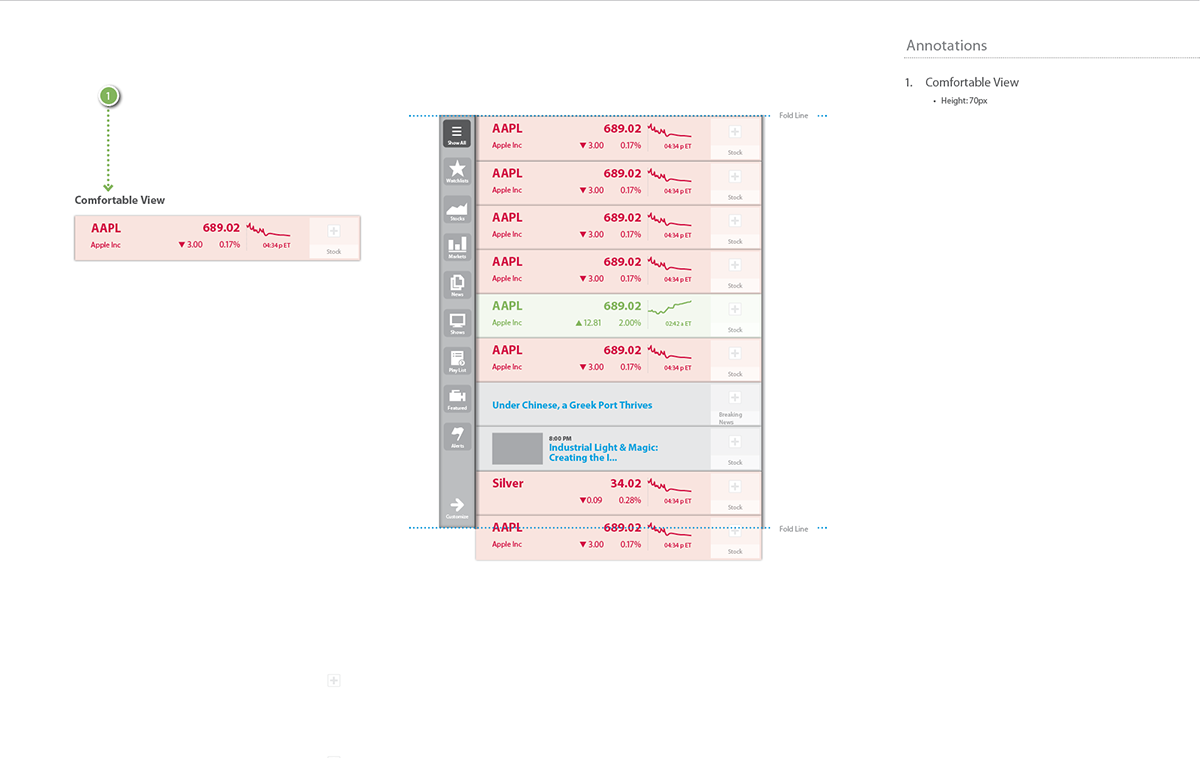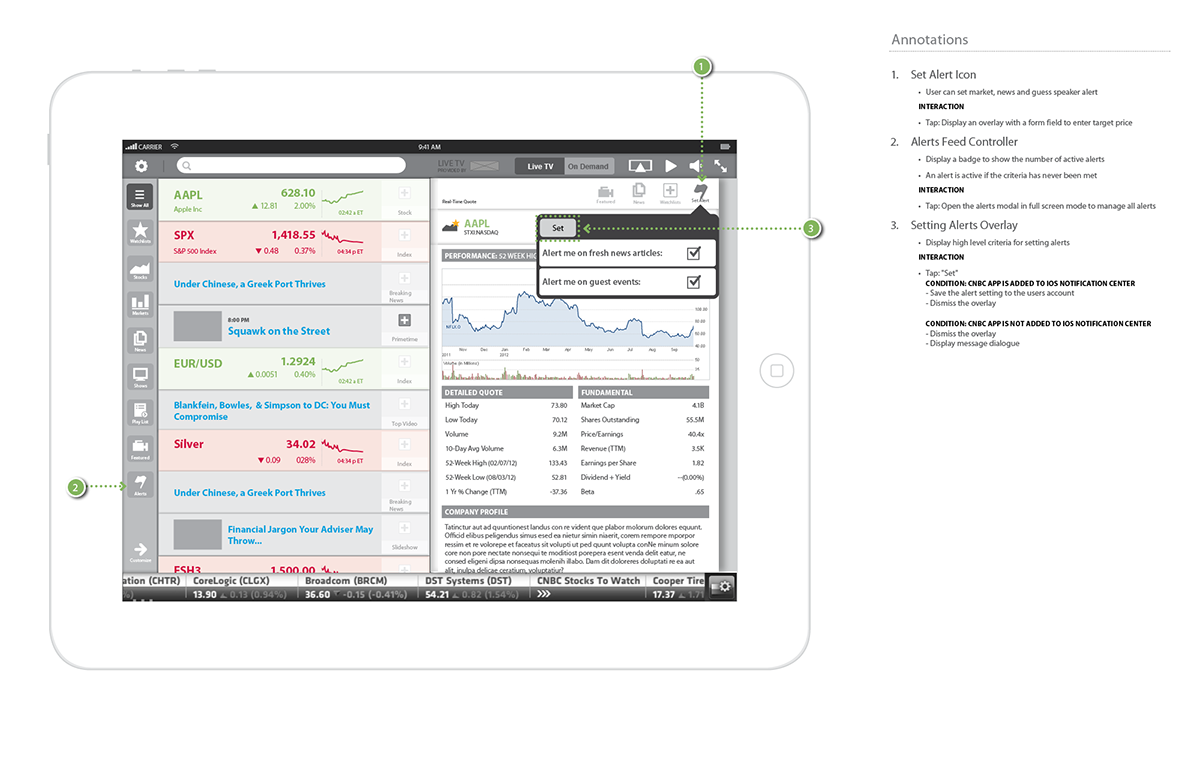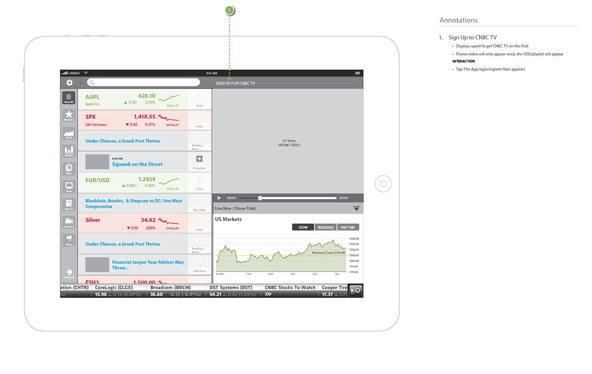 Still seen as the definitive resource for business and stock related information, CNBC needed to revolutionize their digital assets to stay ahead of the curve, maintain, and growth their customer base amidst all the new players. The challenge for the team was a redesign that to showcase CNBC as a forward thinking company who understood the needs of the business news consumer, and was aware of the behavioral shift in the use of mobile devices. Some important things we had to consider to improve on the current app: