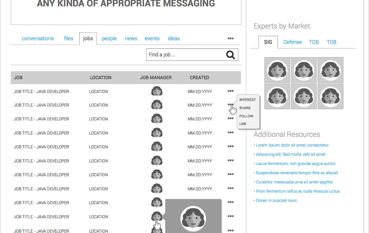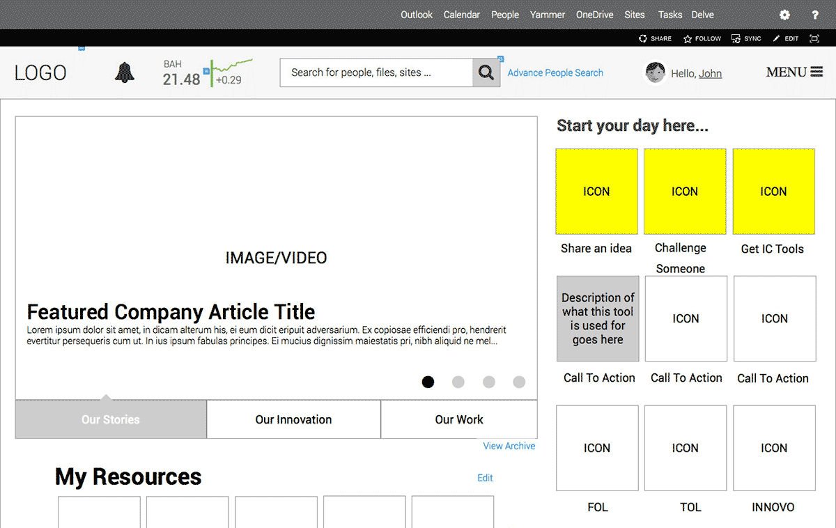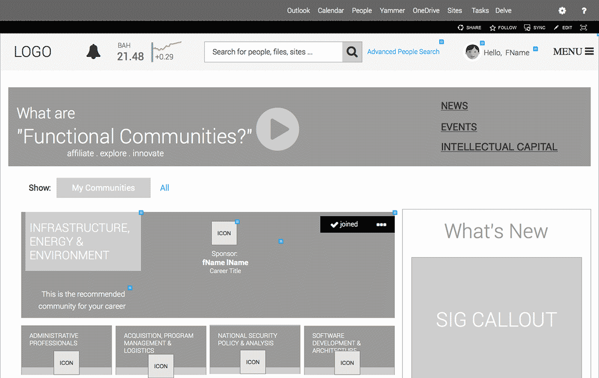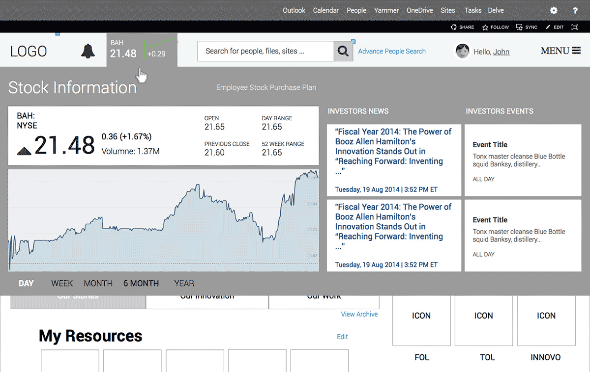 Following a six (6) step process - "engagement, analyzing, design, building, deployment & governance", we conducted several workshops with Booz Allen Hamilton, connecting with Intranet Stakeholders and project sponsors to understand their needs, as well as formulate ideas around crafting a user-centric SharePoint Intranet solution.