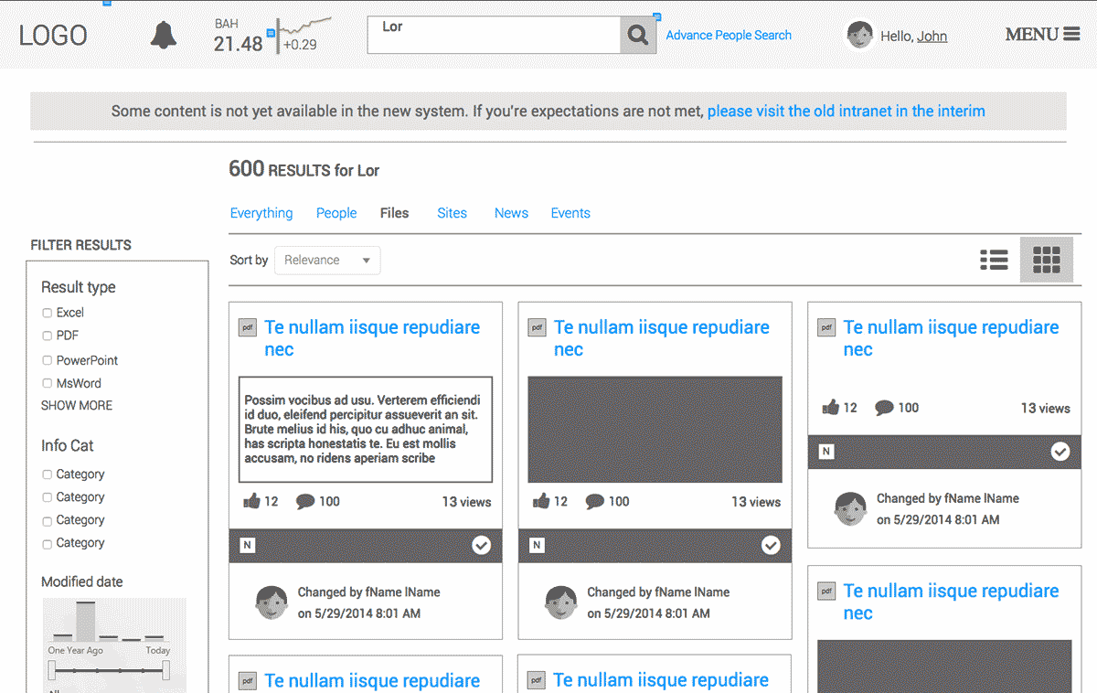 The Booz Allen Hamilton team defined some success criteria in response to our interviews and game storming exercises. These measures focused the design efforts, guided our decisions and ensured that both teams kept working towards the same goals. The redesigned Intranet provided a uniform experience across mobile, tablet, and desktop devices. Different levels of user permissions/security were a major concern since a considerable portion of the content was of a sensitivity/classified nature.